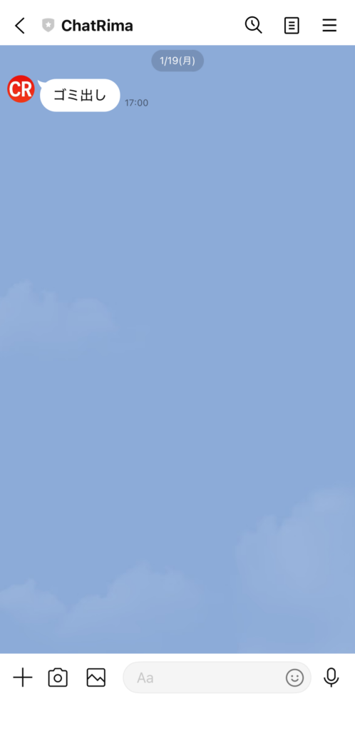 指定した日時になると、公式LINEアカウント「ChatRima」からLINEでメッセージが届きます。