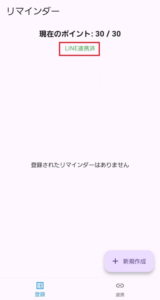 連携完了後は、ホーム画面の 「新規作成」 からリマインダーを登録すると、 設定した日時に ChatRimaの公式LINEからメッセージが届きます。
